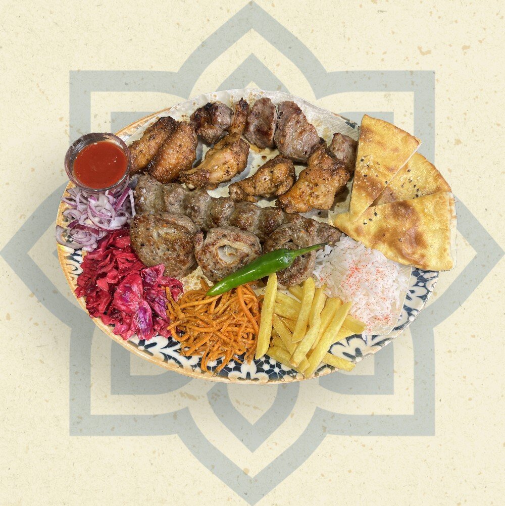 1шт Говядина 1шт Крылышки 1шт Фарш Говяжий 1шт Рулет Хрустящая, картошка, лаваш, вкусный томатный соус, красный лук, салат морковь, красная капуста, Мамины чапати