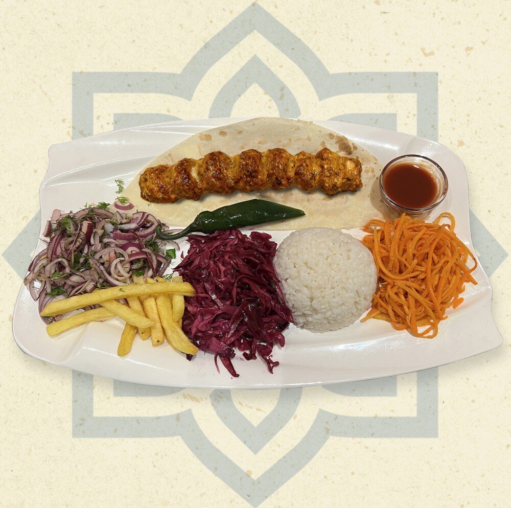 Нежный Фарш, хрустящая картошка, салат морковь, красный лук, лаваш, красная капуста, вкусный томатный соус, мамины чапати